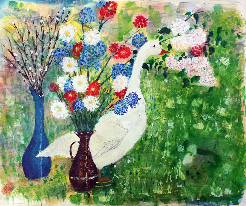 生徒作品のご紹介。主に水彩、アクリル、パステル、ジェッソを使って描かれています。